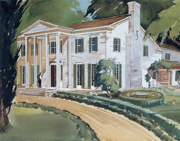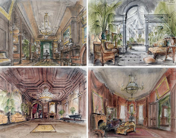可能良多人不知道,威廉·卡梅隆·孟席斯作为建造设计最伟大的前驱最早结业于耶鲁大学艺术与建筑学专业,同时具备建筑学专业常识与绘画能力的他起头运用无数的水彩结果图与故事板草图来节制三维实景的搭建,切确把控镜头下的色调与空气。