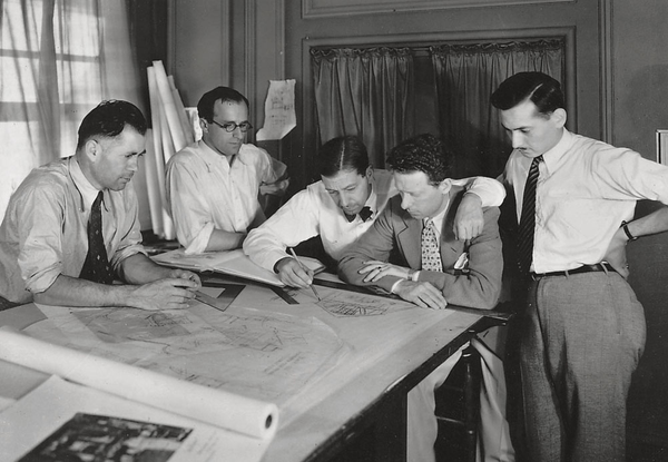 派拉蒙的美术监制汉斯·德雷尔在慕尼黑进修了建筑学,并经由过程本身的美术部分培育了整整一代的建造设计巨匠,当然,他们之中的一部门也拥有建筑学布景,好比亨利·巴姆斯泰德、罗伯特·博伊尔。此外,华纳兄弟的安东·格洛特曾在德国粹习过艺术、室内设计、插画。他操纵繁重的建筑空间,低矮的拱门,阴沉的色彩和对比强烈的暗影奠基了黑帮片子的视觉气概,并影响了将来的黑色片子。