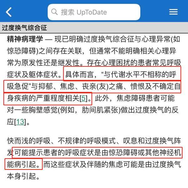 在国际权势巨子医学二级数据库 UpToDate 上检索「过度换气综合征」。可以获得如下成果: