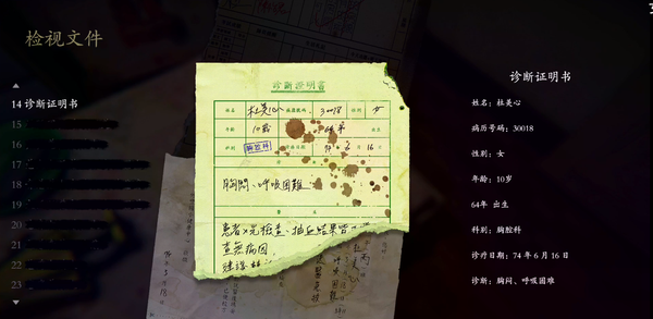 好比说玩家一起头拿到了一份女儿杜美心的诊断书,被撕失落了半截。诊断书显示: