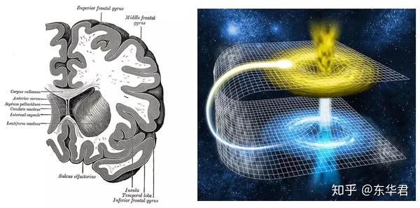 我凡是喜好用物理范畴内的“时空虫洞”来比方我们大脑的沟回系统,同样是“两点之间不是直线最短”,同样是加倍快捷的信息通道:大脑皮层经由过程折叠发生沟回,不单大大地增添了神经细胞数量,也使原本远距离的毗连变得更为便利、快捷,让脑内信息的传输发生了与 “虫洞”近似的跨越式结果。