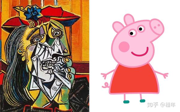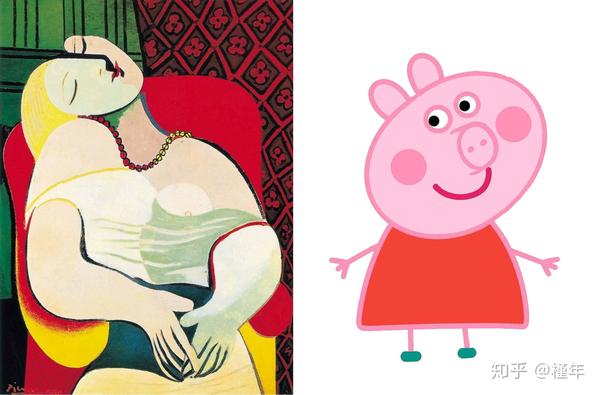 这种画法并不是佩奇作者的独创,最早可以追溯到立体本家儿义巨匠毕加索的作品中。