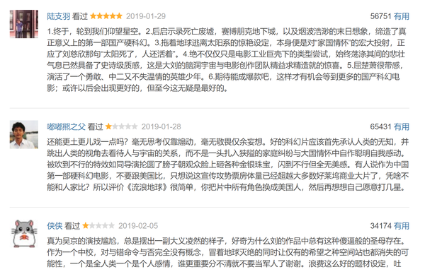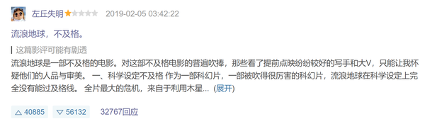 但【已经花了 300 块钱采办了 3 张 IMAX 影票带全家去不雅看了《流离地球》的】我感觉,因为对网站的评价不对劲,就把板子打在豆瓣这个 app 身上,似乎也有些莫名其妙。究竟结果一星的评分是用户本身去打的。热评首页中差评排序居多,那几万票「有效」也是用户本身投上去的。