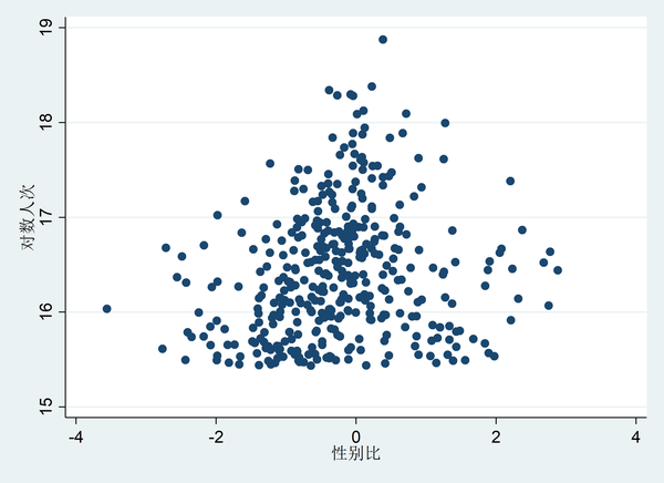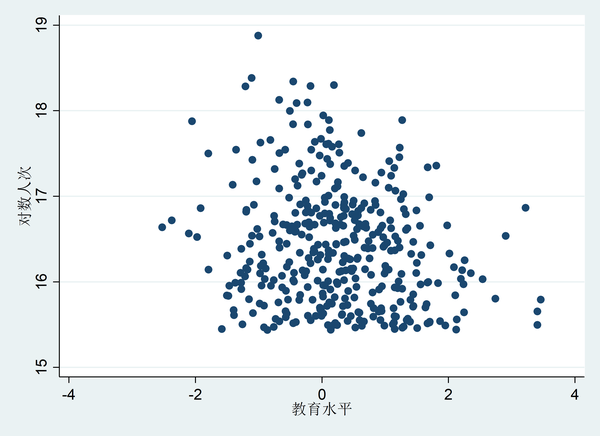我们将性别、教育和春秋这三个指标别离和不雅影人次的对数作图,可以获得下面三张图: