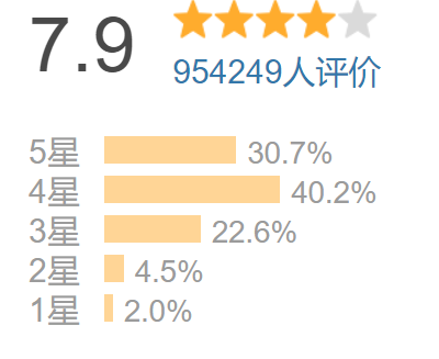 截止到今天,《流离地球》总票房已经冲破 40 亿,当作为中国影史票房第二的作品。与此同时,流离地球在豆瓣上的评分也从 8.5 下降到 7.9,两者的背离激发的会商,其热度完全不亚于《流离地球》内容自己的会商。