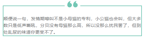 再加上户外的猫,依然保留了夜晚活跃的特征,所以固然你感触感染不到,但它们排泄的性激素的味道可能早就飘满整个社区,从你窗户的裂缝里钻进来了。