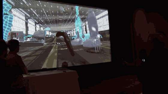 在这个软件初度测验考试时,克莱恩曾问应用开辟团队他是否可以在里面奔驰或跳跃。这个问题并没有难住开辟团队,固然他们一起头只供给了简单的场景漫游功能,但最后人们已经起头在虚拟场景中模拟良多现实动作反馈了。在片子的建造的良多时辰,克莱恩都在虚拟的列车上测验考试一些故事里放置的动作,标的目的导演演示并报告请示,再将会商的成果反馈给本身的设计团队进行点窜。