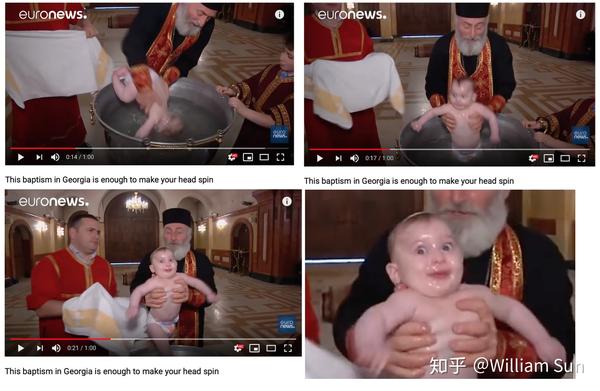 (其实这也不克不及怪他:请看下附截图[7]傍边的格鲁吉亚教会浸礼,神父像薯条蘸番茄酱一样把小孩蘸在圣水里,先蘸头,再蘸脚,如是者三,六秒搞心猿意马。对我们不雅众来说,这简直很搞笑,但小孩可能不这么感觉)