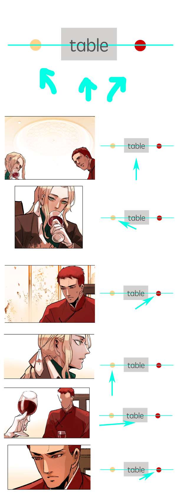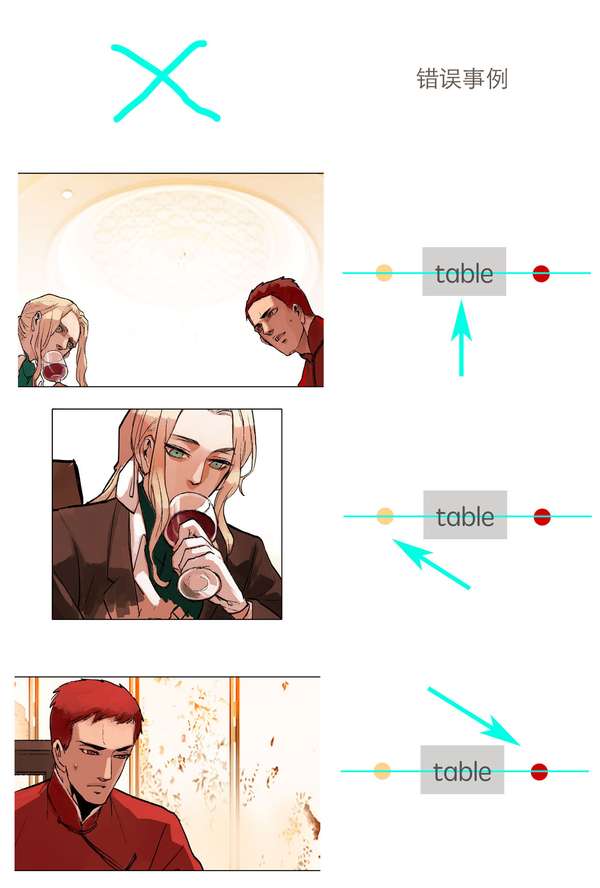 在一个场景中,将两小我物连线,这条线就是所谓的“轴”。开麦拉凡是只会在轴线的一侧进行拍摄,这样会让不雅众在理解到空间关系的同时,达到一个舒适的不雅看习惯。下面示意图中,绿色箭头代表开麦拉的位置。