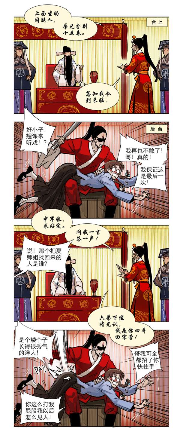 作为一部充溢着“戏”的漫画,戏台上的描写必不成少。除了之前说过的切身体验,《东邻》有一个自然的优势,就是可以将戏台之上和戏台之下对应跟尾。
