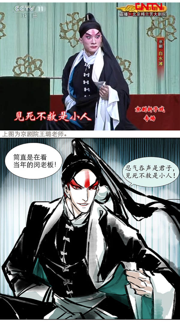除了京剧的身法动作,将脚色看成一个“活人”也是十分主要的。在一个场景进行的过程中,尽量给人物插手合适那时情况和心境的动作,比起转变分歧的帅气姿势要更为鲜活。