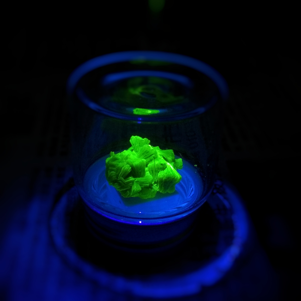 过渡金属离子四周的配体可使其外层 d 轨道发生能级割裂。电子在接收特心猿意马波长的可见光后,可以跃迁至激发态,然后在返回基态时释放对应能级差的光电子,闪现出对应的互补色。