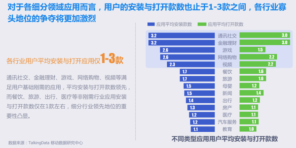 在移动互联网时代,马太效应愈发现显,要么是赢家通吃,要么就是裁减出局,各类 App 充溢在应用商铺中,用户的转换当作本也越来越低,不管是哪个细分范畴的应用,若是不是做到行业前三就很有可能被用户丢弃,因为各行业用户安装与打开的应用仅 1-3 条目。