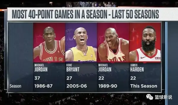 (哈登本赛季 2 月中旬疯狂抢分阶段的汗青赛季 40+ 场次榜)