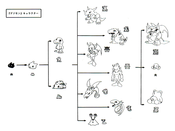最初《数码宝物》却不是想画当作今天这样,可是无奈这些设计已经被抢占。联系到企划案是从 1997 年上半年起头的,这里提到的“某游戏脚色”应该是指 1996 年登录任天堂 Game Boy 平台的 Pokemon 系列,《数码宝物》原案中的“火之恐龙”和“水之怪兽”应该是“撞脸”了小火龙和杰尼龟。
