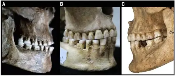 其其实人类中,覆合 / 笼盖才是出生后的牙齿尺度模子,打猎地域的人类持久吃粗拙类的食物会造当作牙齿过度磨损,同时引起齿槽的改变。牙齿为了更好地啃咬食物也会移动位置,来填补磨损部门的缺掉,最终成长当作了对切咬合。而一旦咬合体例形当作,说话发音也随之发生改变。研究指出,这种磨损造当作的改变不仅仅只是现代打猎地域人独有,在早期智人中同样遍及存在。