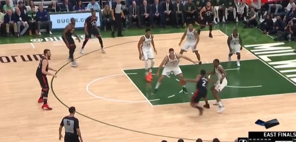 ——布莱索、米德尔顿和大洛上提,做了一个很严密的多防小,露出底线传球陷阱供字母哥协防。