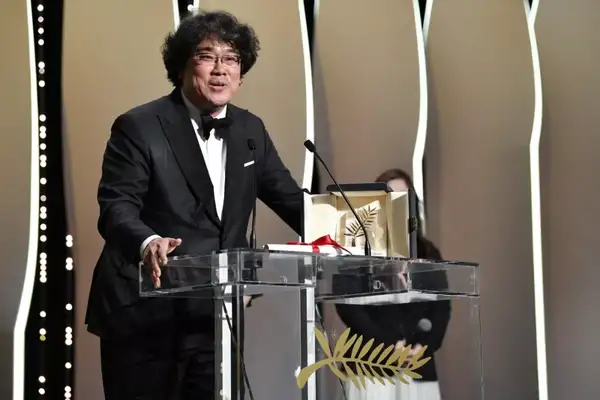 凭借《寄生虫》摘下韩国影史首座戛纳金棕榈桂冠的奉俊昊在颁发感言