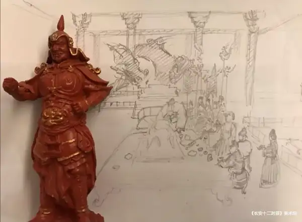 3.剧中有良多给人印象深刻的道教神像,我们查阅了良多画册,唐代神像遗存很少,道教题材的更是百里挑一,便经由过程资料的综合比对,找出唐代造型的特点,连系那时的盔甲服饰,设计了一套道教神像,考虑到那时皇家对道教推崇,而神殿又地处长安,造型上会比现有文物更精彩,这些都是我们考虑过的。