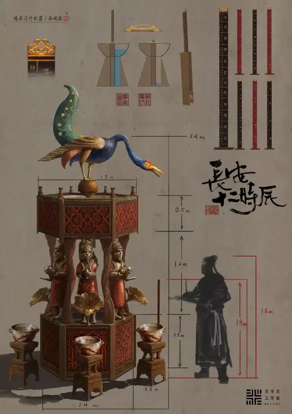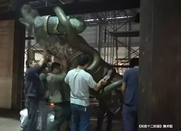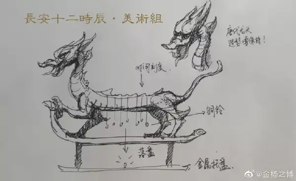 我们剧中的“火闹钟”,也参考这一道理,而镇兽的造型来自唐代经典的走龙形象,唐代龙的形象跟我们此刻看的明清的龙有很大分歧,具体在这里不赘述了,大师可以去留心,并且细心的不雅众会发现剧中会有几处唐代金龙的呈现,他们是有延续性的。