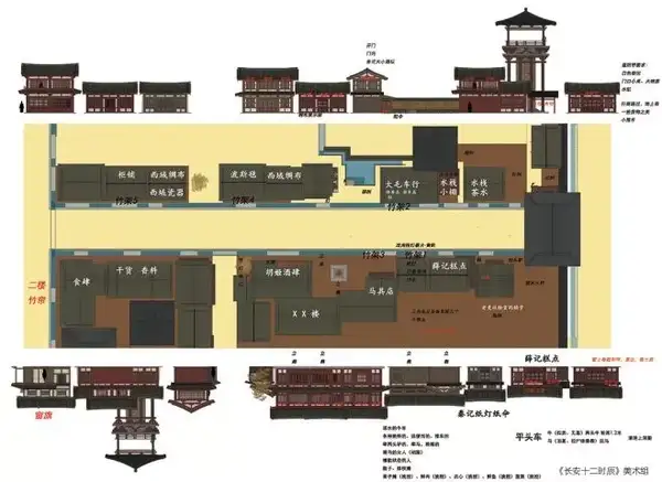 1.唐朝西市平易近居根基已无遗存,我们综合了海说神聊宋的古画和出土的唐代陶楼的建筑气概,再设计而当作,整体保留了唐建气概;并按照拍摄需要,做一些凹凸升沉的节拍感,可是没有做较着的双檐和很高的楼阁去营造富贵拥挤,也是出于对汗青的尊敬。