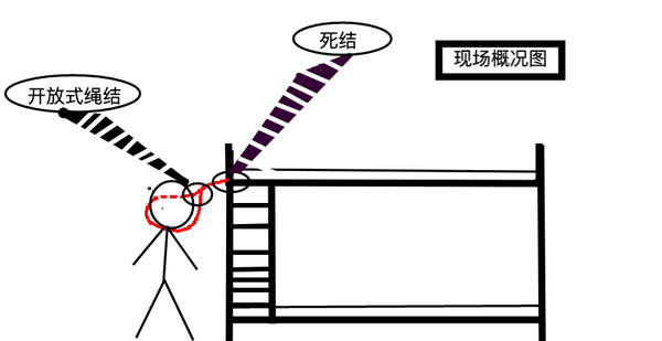 ——死者反缚的绳结相对于门框上的要简单松散,只是以简单环绕纠缠为本家儿,是便利脱身。