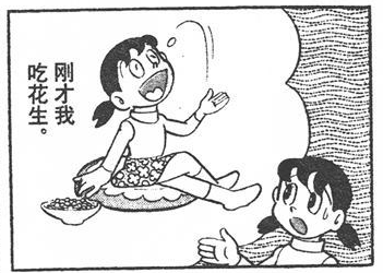 二郎腿,以及与大雄一样的吃花生特技……