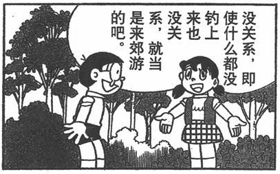 因为大雄选错了垂钓的地址,静喷鼻不仅没有钓到鱼,还遭到了胖虎和小夫的冷笑。然而静喷鼻涓滴没有指责大雄,反而这样说: