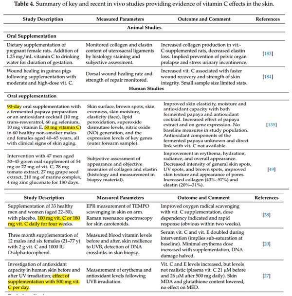[1]Pullar, J., Carr, A., & Vissers, M. (2017). The roles of vitamin C in skin health.Nutrients,9(8), 866.