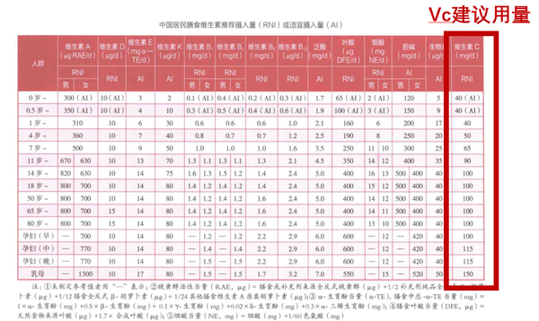 是以在这里我建议参考,中国居平易近炊事指南保举的维C摄入量——100mg/d(大于14岁)。其实这也是大部门人体尝试采用的一个剂量。