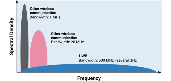 我们都知道,UWB 所采用的是 500MHz 以上的大带宽。而频域扩展等于时域缩短,是以此刻的传统 UWB 系统中,脉冲的宽度一般在数纳秒到数十纳秒之间,这意味着旌旗灯号自己的占空比很低。