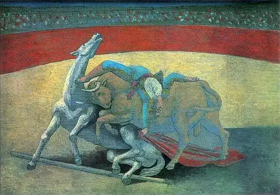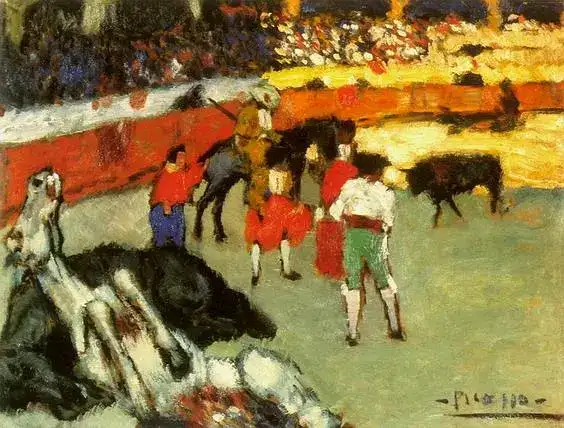 若是对比毕加索和马蒂斯,马蒂斯的颜色是直觉的,而毕加索的颜色是计较出来的,“马蒂斯是直觉地运用色彩,毕加索则将颜色看作是与形式互相分手的功能;他喜好图解式地将色情的、脱俗的、妖魔化的感受放进绘画中,或者爽性将一个特心猿意马图像做戏剧化处置。”在近似绘画红磨坊舞会画面里,毕加索借助一种西班牙明暗法——黑色被辉煌的深红和黄的色斑照亮。他机关画面的依据是现代本家儿义的暗影,而非印象本家儿义的色光。(《毕加索传:1881-1906 (卷一) [英] 约翰·理查德森,孟宪平,浙江大学出书社·启真馆, 2016.12 》