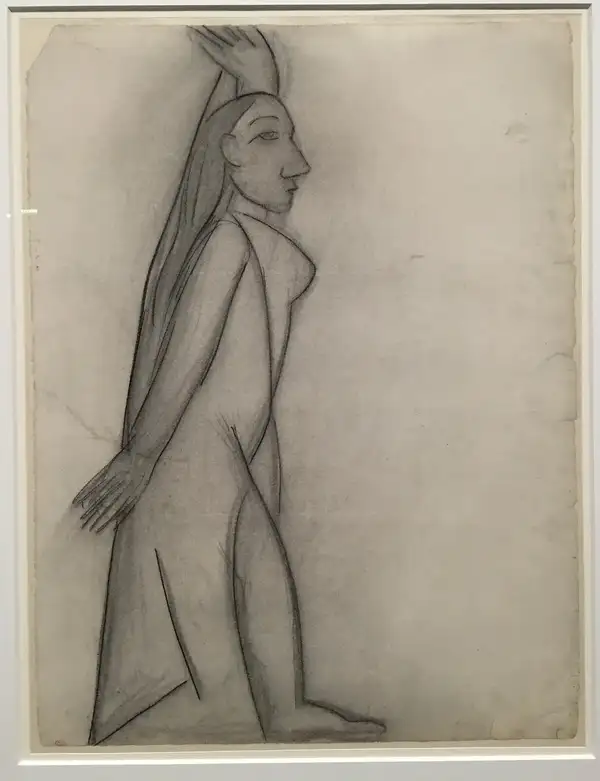 从展览可以看到,1907 年之前的毕加索还画着梦幻的甜或酸的叙事,之后豪情渐减,阐发渐增,受到非洲木雕影响很大,也许还包罗木雕一刀刀雕镂般的笔触。在很多毕加索列传中,对毕加索话语的引用有着反智的意味,譬如毕加索所言要画的像小孩一样。毕加索的形象是被媒体和八卦塑造出来的。然而,立体本家儿义降生的描述越清楚,越是被非洲木雕和亚威农少女的形象所直接界说,立体本家儿义的降生过程就越是听起来无趣。加之毕加索所自述要画的像一个儿童一样,就和梵高被塑造当作一个疯狂的纯真的圣人一样,变得扁平化。展览里展出了几幅为亚威农少女做筹办的草图,能看到他为“立体本家儿义”找形的过程,以及把身体酿成脸的偶尔。
