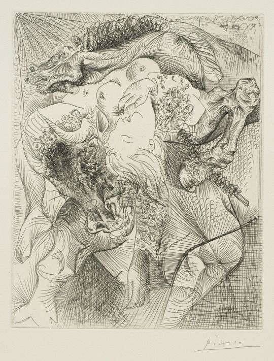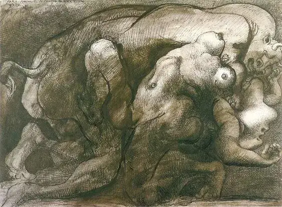 毕加索穷极一切可能的尝试,带着无比迅疾和持久的力量,对身边触及艺术气概的仿照与化用;测验考试规模之广,用力之猛,完全不是今日想要追求标签式小我气概的画家所能对比。但无论他从哪位画家那边取材,都褪去对实际的直接仿拟。他所有的尝试,就像他的西班牙前辈戈雅在画面中那些庞大的不透明的暗影,藏匿沉迷一样不成测的深度。