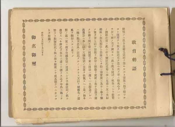 ► 大日本帝国明治天皇《教育敕语》,于 1890 年公布,是这个教育体系体例的最高纲要
