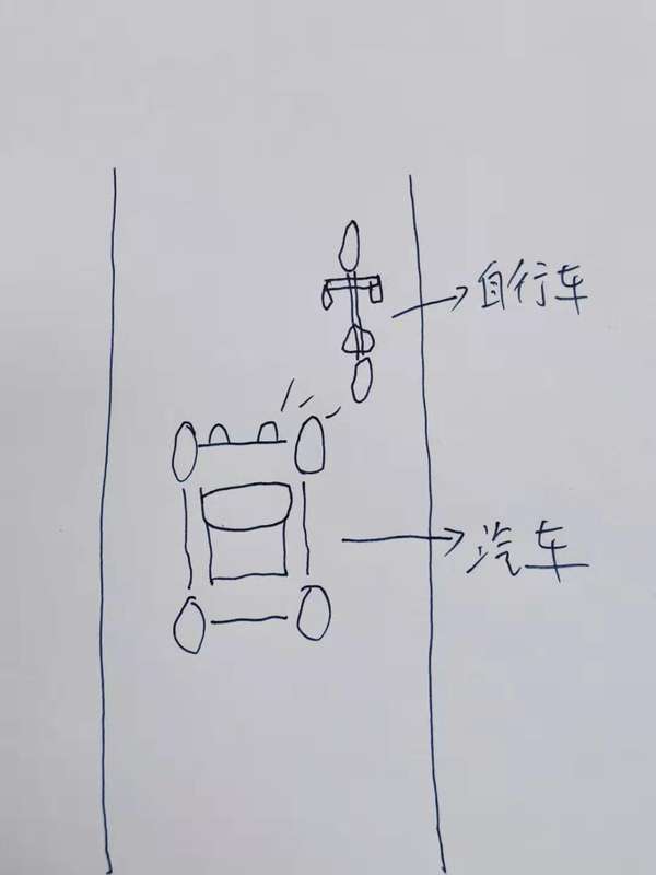 汽车超车凡是采用的左侧超车法,而驾驶员在左边,对右侧和自行车之间的距离判定欠好把握。