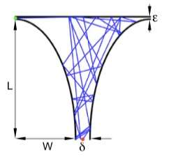 杨靖假设,精子的活动轨迹有点儿像桌上的弹珠。若是没有撞到鸿沟,精子就会以大约每秒 75 微米的速度沿着一条直线游动。若是撞到鸿沟,精子就会随机地以一个角度反弹出来,然后继续沿着一条直线游动。