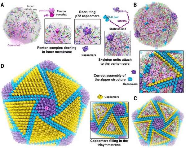 因为病毒颗粒大,研究团队需要降服三个难题:在病毒纯化时,病毒太大轻易发生形变;数据收集是一个出格庞大的挑战,每次镜头只能容下 1 到 2 个完整病毒颗粒,需要经由过程精挑细选才能获得抱负的电镜图片;三维重建时需要优化算法,逐级放大。