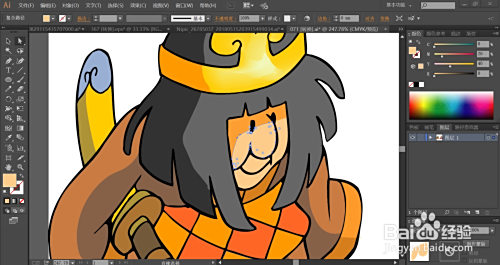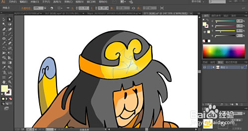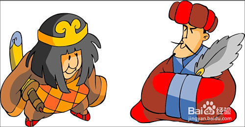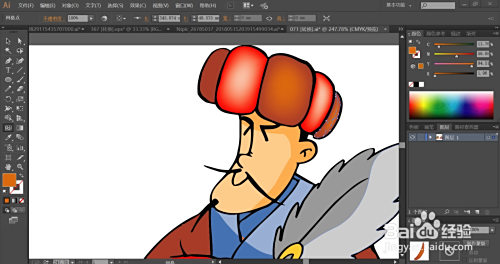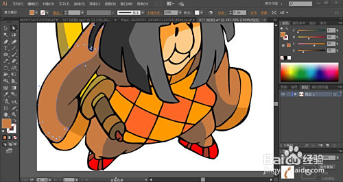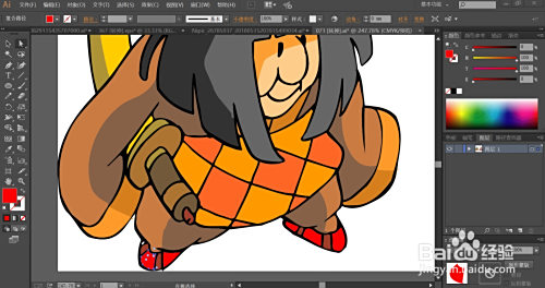 侠客的鞋子用红色与红棕色搭配填充,巨匠的帽子也用红色与红棕色搭配填充,再用网格东西点击帽子让其呈现红色渐变与红棕色渐变的结果。