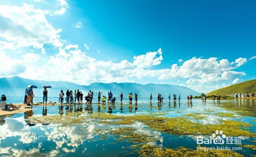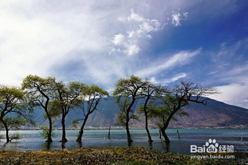 这里的田园、白族平易近居风光无限。沿岸水中的老树和芦苇是迷人的风光。