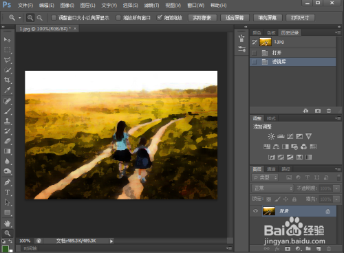 5、我们就给图片添加上了壁画艺术结果滤镜。