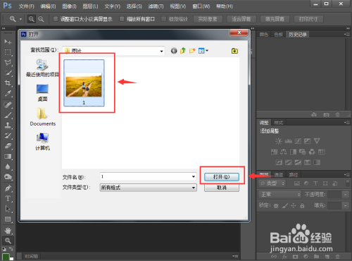 按ctrl+O,在打开窗口选中要处置的图片,点击打开;