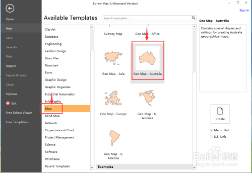 1、打开Edraw Max,在地图中双击澳大利亚;
