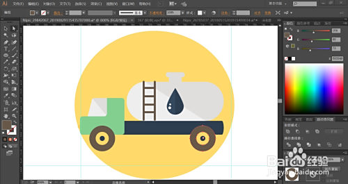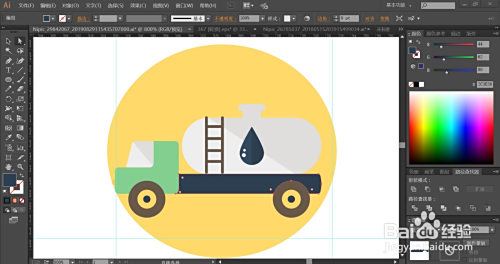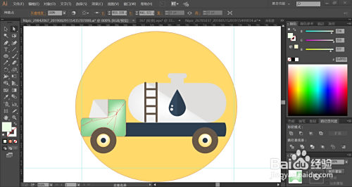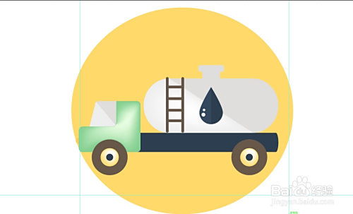 利用绿色与灰白色搭配填充车头,利用绿棕色填充车上的梯子,利用绿棕色与黄色搭配填充车轮,利用网格东西点击车头与油罐让其呈现渐变色。