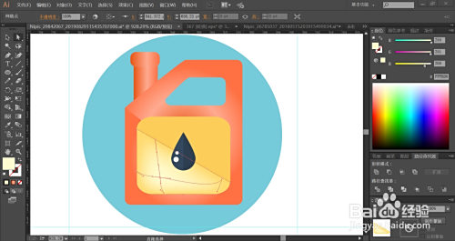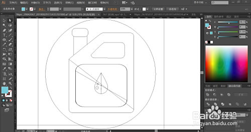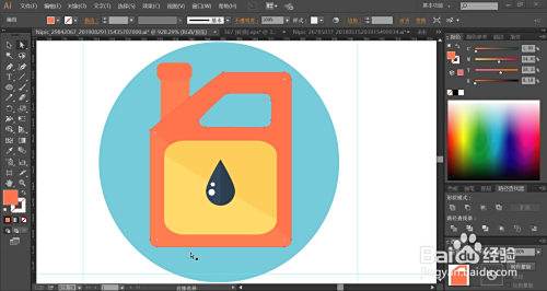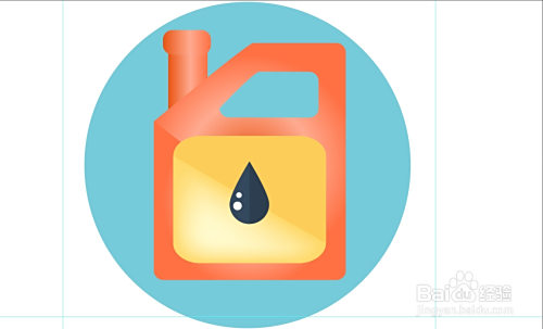 利用钢笔画出油桶的根基路径,再画出油桶上面的油滴的外形,利用圆形与矩形画出图标的布景与油桶正面的贴纸外形。