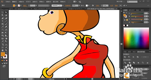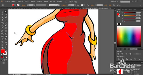 最后,女人的旗袍用大红色与暗红色填充,女人的裤子用红棕色填充,脚用粉色填充,完当作紫蝶女人漫画设计。