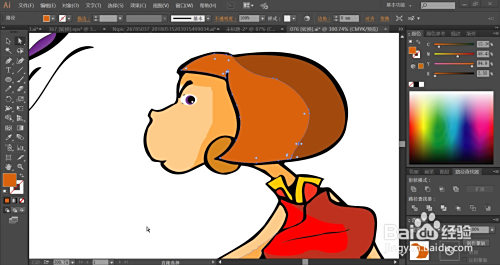 女人的衣服用橙色与暗橙色填充,女人的手镯用橙黄色填充,手臂用明暗两种黄粉色填充出光线转变的结果。
