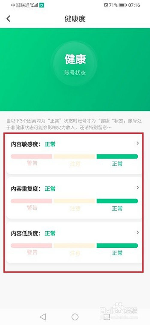 第四步进去之后,可以看到账号健康状况,如下图所示: