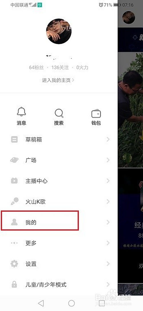 第二步进去抖音火山版侧边栏之后,点击我的,如下图所示: