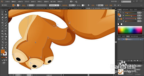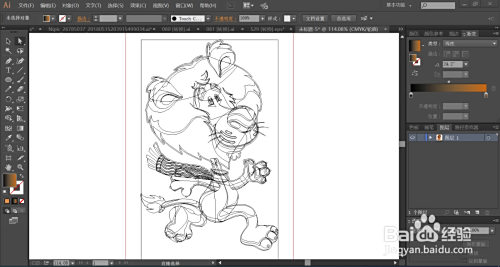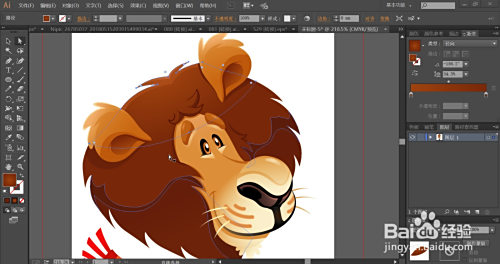 利用钢笔画出狮子的脸色细节,头部与身体的动作的动作细节,包罗狮子的领巾与脚掌等分歧元素的路径,重点绘制狮子的眼晴与嘴巴,还有脚掌的布局细节。